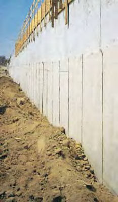 | Imperméabilisation d'un mur en béton en contact avec le terrain, par sa face extérieure, avec géocomposite de bentonite de sodium | ||