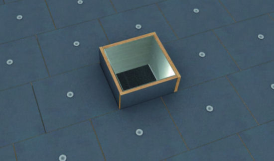 Isolation thermique de lanterneau en toiture terrasse chaude, inaccessible, métallique étanche, constituée de panneau rigide en laine de roche soudable "ROCKWOOL", selon NF EN 13162, à double densité (230 kg/m³ dans la couche supérieure et 150 kg/m³ dans la couche inférieure), revêtu sur la face supérieure par un tissu de verre blanc, de 40 mm d'épaisseur, résistance thermique 0,95 m²K/W, conductivité thermique 0,041 W/(mK), placé bord à bord dans le périmètre de l'ouverture du lanterneau. | ||