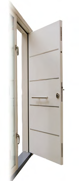 | EME140 | Bloc-porte extérieur d'entrée au logement, vitrée, en acier galvanisé, avec rainures verticales | |