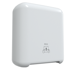 Porte-serviettes en papier continu, avec carcasse en ABS de couleur blanche, de 251x300x195 mm, pour un rouleau de papier de 240 m et 155 mm de diamètre. |