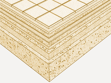 Démolition complète d'une toiture terrasse chaude, accessible, avec un revêtement de sol céramique; avec un marteau-piqueur, sans affecter la stabilité des éléments constructifs contigus, et chargement manuel dans le camion ou la benne. | ||