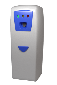 Diffuseur d'ambiance électronique, avec bouton-poussoir on/off, DEL indicatrice de charge d'aérosol, DEL indicatrice de batterie et capteur de lumière, en polypropylène blanche et bleue, de 240x86x85 mm.